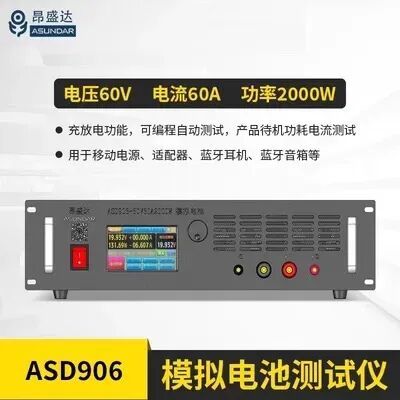 ◦ 2000W(ASD906-60V60A):大功率旗舰款,蕞大电压60V、电流60A,具备自动测试功能,能模拟储能移动电源复杂充放电工况,满足高功率产品研发实验与批量检测需求。