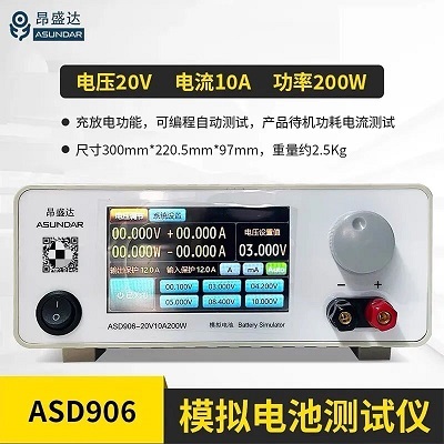 ◦ 200W(ASD906-20V10A):入门级高性价比款,蕞大充放电电流10A,可替代电池对适配器、小型移动电源PCBA板进行功能测试,适用于小功率电子设备研发实验。